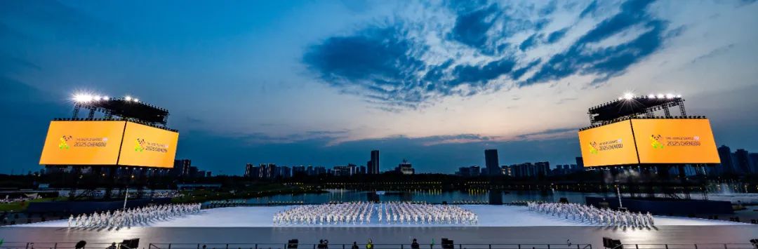 盛典最“成都”之處莫過(guò)于此。不同于其他賽會(huì)開(kāi)幕盛典在場(chǎng)館內(nèi)舉辦的“嚴(yán)謹(jǐn)感”,成都世運(yùn)會(huì)的開(kāi)幕式選擇了“天府之檐”前的開(kāi)放區(qū)域,是完全嵌入在城市開(kāi)放場(chǎng)景中的全新嘗試。伴著自然湖景與綠地,映著晚霞與星空,一切演繹,一切參與,都將融于這座公園城市的斑斕色彩之中。