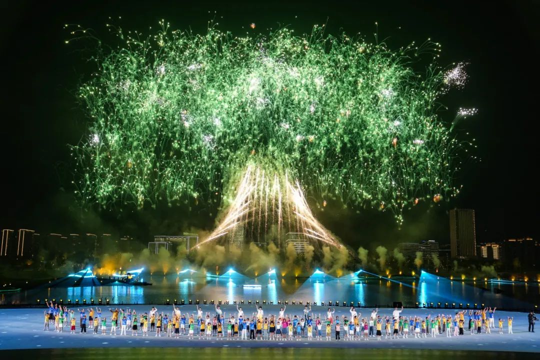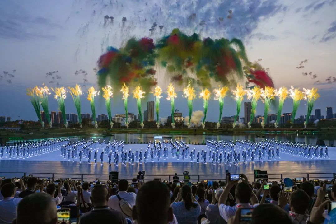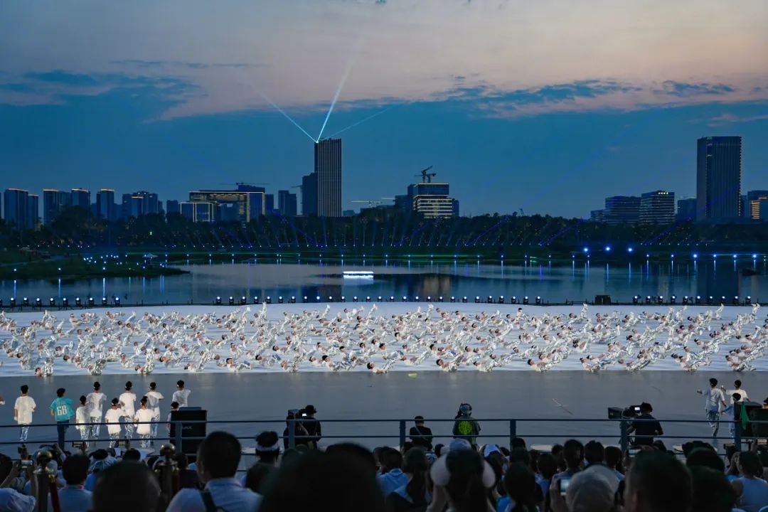 當(dāng)然,喬衛(wèi)口中的“繽紛”,并不僅僅來(lái)自于舞臺(tái)的光彩奪目、焰火絢爛。碧的水,綠的草,錯(cuò)落的城市天際線,以及從晚霞到夜幕的天空,都是成就“繽紛”的重要色彩。